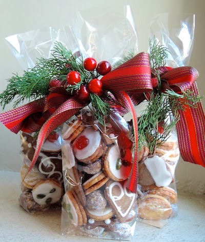 For this year's gift wrapping, I chose silver and winter white paper, and decorated it with sparkling crystals, frosted berries and ribbons in ice blue, gold, mulberry and silver.