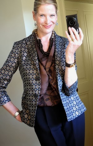 Wearing a Dip Dye Brides de Gala 90 carré as a halter top, with a Kelly Double Tour bracelet in ebene and a MaiTai Collection waterfall necklace in black
