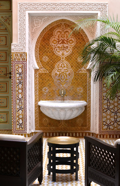 Marrakech is one of the places where it is hard to choose a hotel... there are just so many beautiful options! Some date back to the 18th or 19th century, when wealthy Moroccans constructed private retreats (riads) within the labyrinth of the inner city, the Medina. A riad is typically surrounded by an unassuming brick or mud wall, but when you step inside, a little paradise unfolds... you'll find mansions or small palaces which open their windows and balconies onto tranquil and shaded courtyards, or a fragrant garden filled with rose and orange blossom scents.